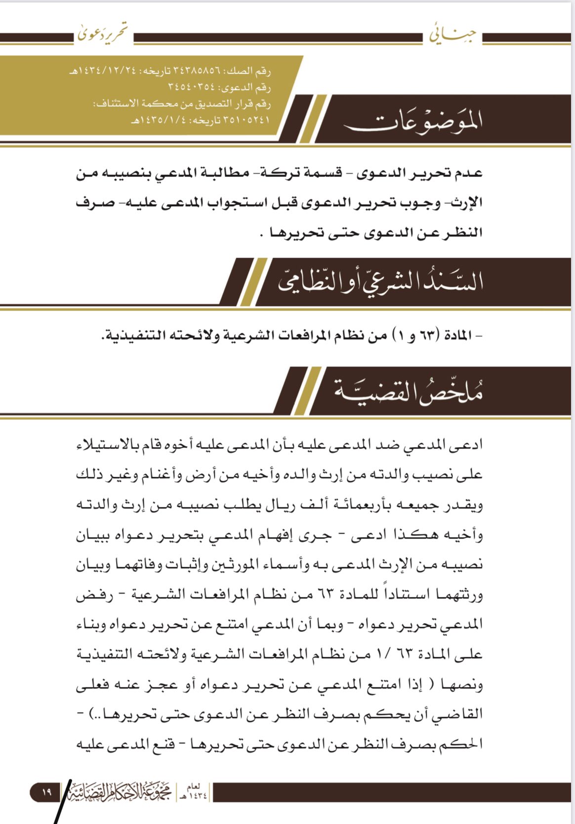 المحامي عبداللطيف النعيم On Twitter حكم قضائي الموضوع عدم تحرير الدعوى قسمة تركة مطالبة المدعي بنصيبه من الإرث وجوب تحرير الدعوى قبل استجواب المدعى عليه صرف النظر عن