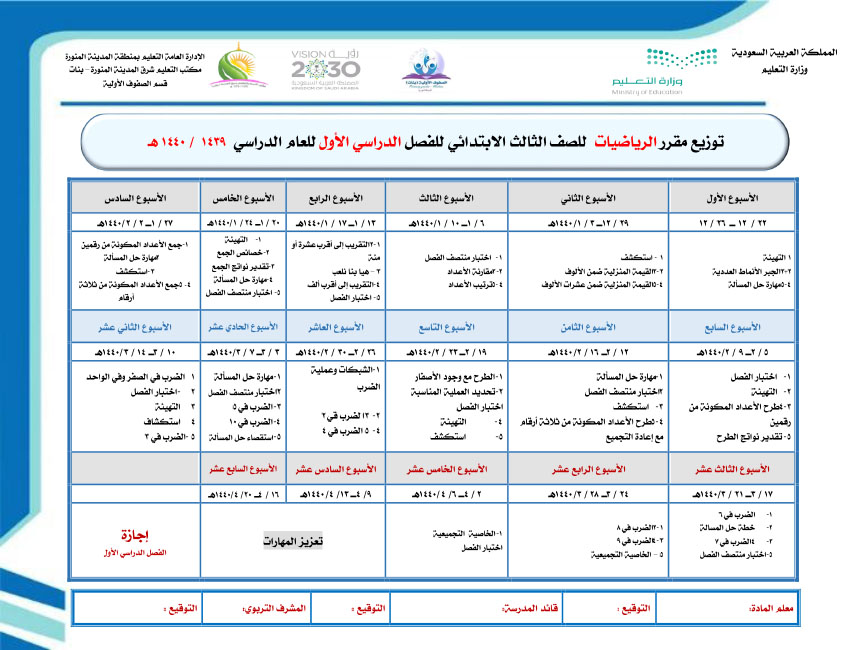 توزيع مناهج الصف الثالث 1439 1440 مدونة الصفوف الأولية بمكتب تعليم شرق المدينة بنات