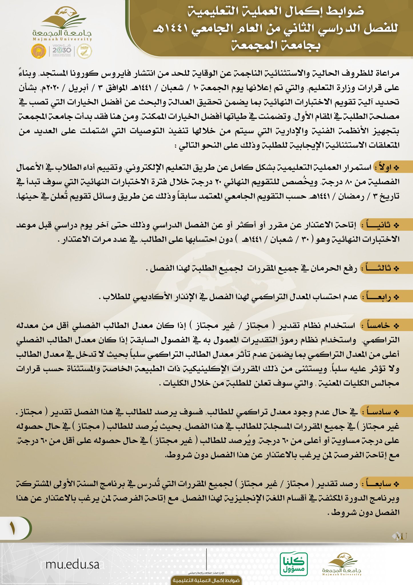 جامعة المجمعة On Twitter ضوابط إكمال العملية التعليمية للفصل الدراسي الثاني للعام 1441هـ بـ جامعة المجمعة