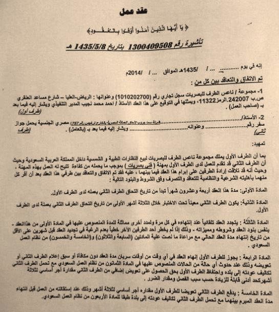 عقد عمل مصري بالسعودية