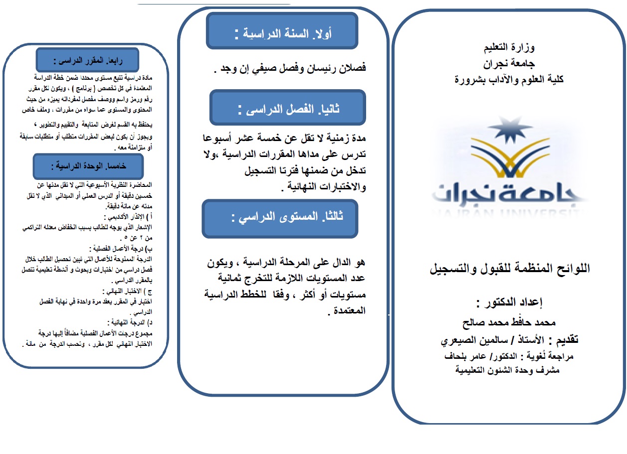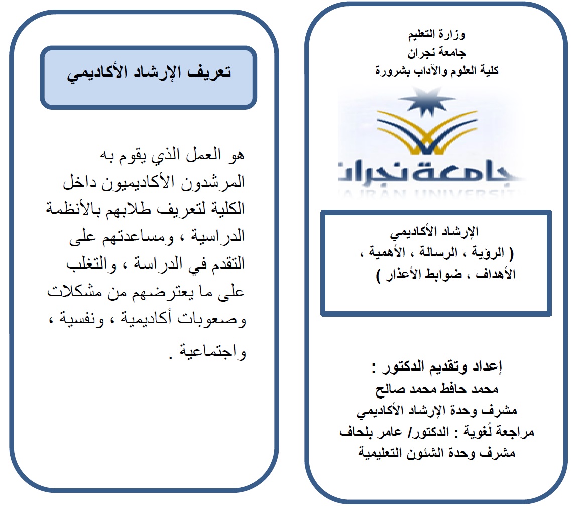 College Of Science And Arts Sharoura مطوية الارشاد الاكاديمي للفصل الثاني 1440 هجري