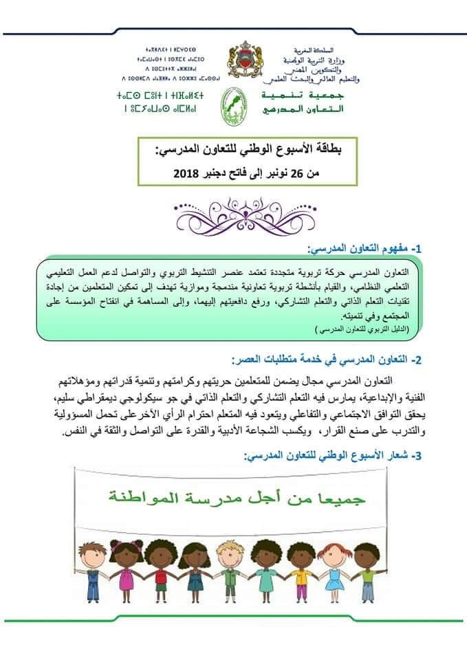 كل ما يهم التعاون المدرسي وثائق و أنشطة الأسبوع الوطني للتعاون المدرسي موقع الأساتذة والتلاميذ للتعليم عن بعد