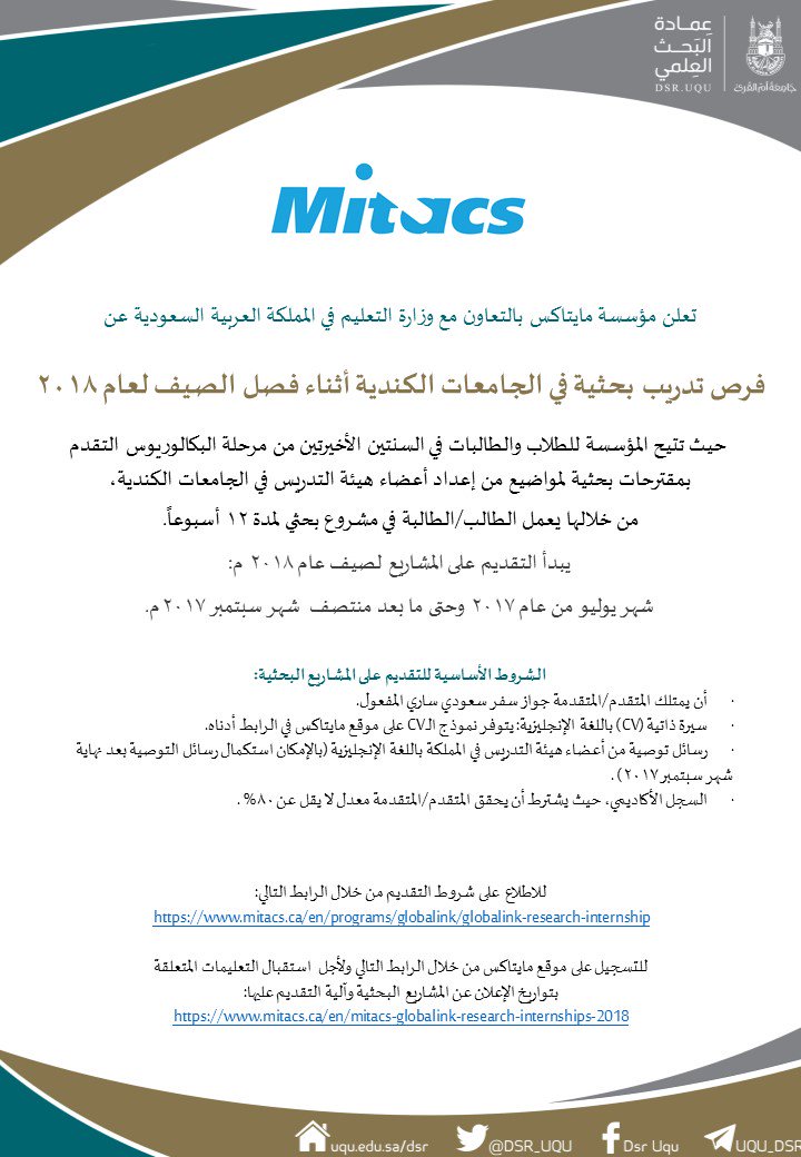 عمادة البحث العلمي On Twitter فرص تدريب بحثية في الجامعات الكندية أثناء فصل الصيف لعام 2018م Https T Co Hh000tfcid