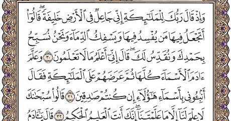 القران الكريم و إ ذ ق ال ر ب ك ل ل م ل ائ ك ة إ ن ي ج اع ل ف ي ال أ ر ض خ ل يف ة ق ال وا أ ت ج ع ل ف يه ا م ن ي ف س د ف يه ا و ي س ف ك الد م اء و ن ح ن ن س ب ح ب ح م د ك و ن ق د س ل ك ق ال إ ن ي أ ع ل م م ا ل ا ت ع ل م ون